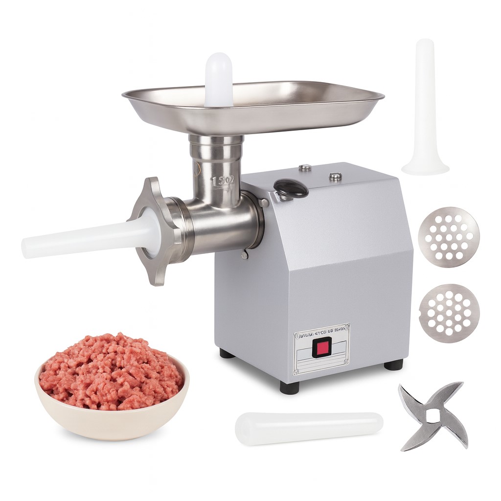 Profesionálny mlynček na mäso INOX 12″ s úsporným dvojkondenzátorovým motorom (1650 W) a výkonom porovnateľným s 3000W strojmi. Plne nerezové prevedenie, kapacita 250 kg/h, olejový kovový hriadeľ a jednoduchá montáž jedinou skrutkovou svorkou.