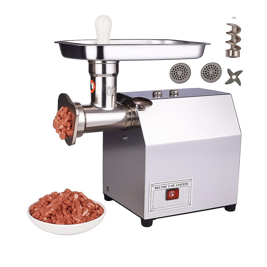 Profesionálny elektrický mlynček na mäso s výkonom 800W (ekvivalent 2200W) a kapacitou 150 kg/h. Ideálne pre reštaurácie, mäsiarov i domácich výrobcov. Vyrobený z nerezovej ocele a hliníka, ľahko sa čistí a má tichú prevádzku.