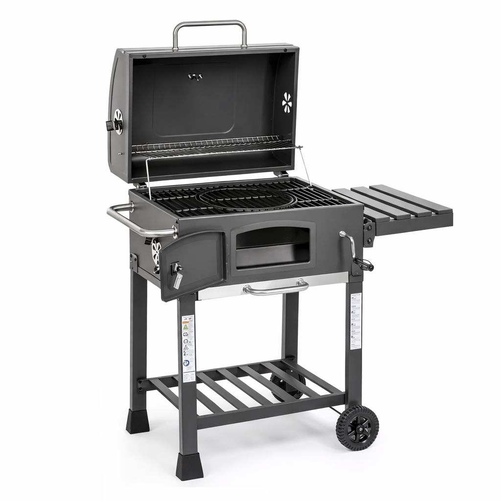 Odporúčané použitie: Tento model je ideálny na záhradné grilovanie, rodinné oslavy aj víkendové posedenia s priateľmi. Vďaka nastaviteľnému ohnisku a dobrej regulácii teploty je vhodný na prípravu mäsa, zeleniny aj ďalších grilovaných špecialít na drevenom uhlí.