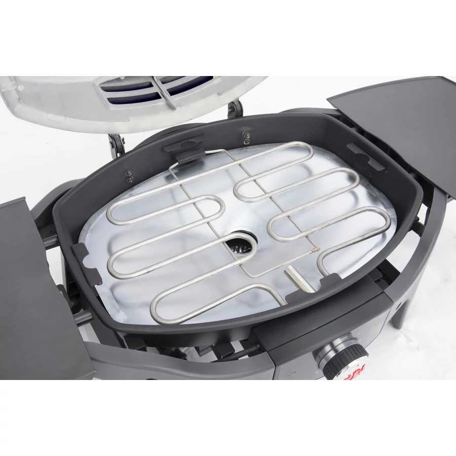 Opis produktu: Elektrický gril Landmann E-Pantera je vyrobený z lakovanej ocele, hliníka a liatiny, čo zabezpečuje dobrú odolnosť a dlhú životnosť. Grilovacia plocha s rozmerom 48 × 37 cm je tvorená dvojdielnym liatinovým roštom, ktorý výborne akumuluje teplo a zabezpečuje rovnomerné prepečenie jedál. Výkonné elektrické vykurovacie teleso dokáže dosiahnuť teplotu až 300 °C. Veko s integrovaným teplomerom umožňuje kontrolu teploty počas grilovania. Odnímateľné bočné police zjednodušujú skladovanie.