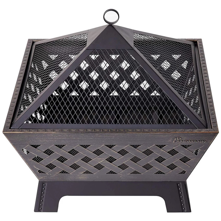 Opis produktu: Záhradné ohnisko Landmann JAPAN je vyrobené z ocele a zaujme moderným kužeľovým tvarom s dekoratívnym krížovým motívom. Sieťované veko slúži ako ochrana proti odlietavajúcim iskrám a zároveň umožňuje bezpečnejšie používanie pri horení dreva alebo uhlia. Súčasťou balenia je aj praktický kutáč, ktorý je vhodný na nadvihnutie iskrolapu a manipuláciu počas používania. Ohnisko je doplnené o ochranný obal odolný voči poveternostným podmienkam, ktorý pomáha chrániť výrobok pri skladovaní vonku.