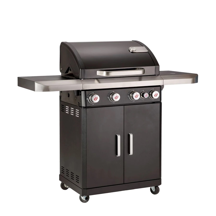 Odporúčané použitie: Ideálny pre väčšie rodinné grilovanie a záhradné oslavy. Vhodný na prípravu mäsa, zeleniny aj príloh vďaka bočnému horáku a rovnomernému rozloženiu tepla.