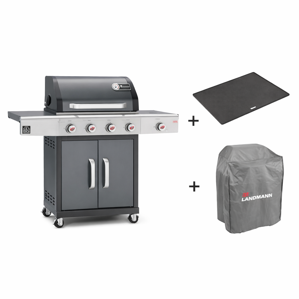Výkonný plynový gril so 4 horákmi a bočným horákom, liatinovým roštom a systémom PTS pre rovnomerné grilovanie. Champion balík navyše obsahuje ochranný obal a liatinovú platňu.
