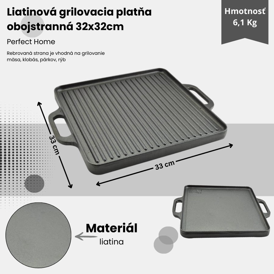 Liatinová grilovacia doska obojstranná 32x32cm Perfect Home
