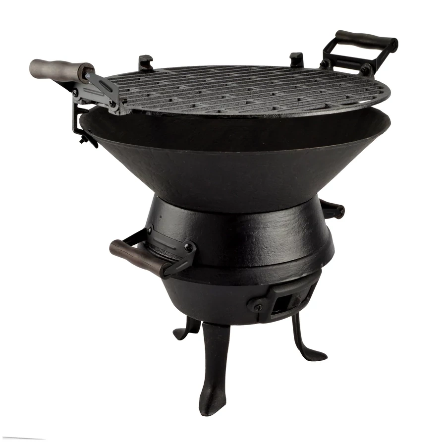 Popis: Masívny liatinový gril na nožičkách je ideálnou voľbou pre všetkých milovníkov vonkajšieho grilovania. Vďaka hrubostennej liatine sa teplo rozvádza rovnomerne po celej ploche roštu, čo umožňuje dokonalé prepečenie bez pripaľovania. Gril je stabilný, odolný a ľahko sa prenáša. Perfektný na prípravu mäsa, rýb, zeleniny alebo klobás na záhrade aj pri táborení.