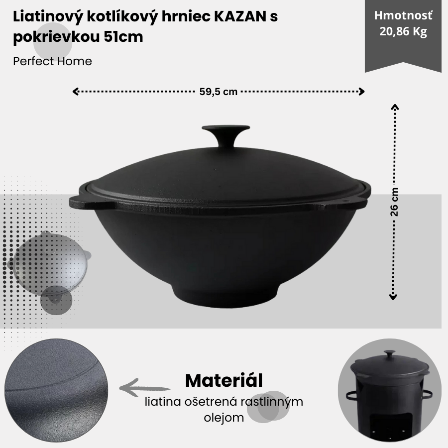 Liatinový kotlíkový hrniec KAZAN s pokrievkou 51cm Perfect Home