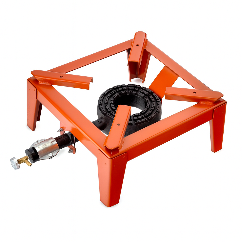 Popis: Tento voľne stojaci plynový varič s jedným širokým horákom je ideálny pre vonkajšie varenie, catering, stánky aj reštaurácie. Robustná konštrukcia z ťažkej ocele zaisťuje vysokú stabilitu a dlhú životnosť. Vďaka výkonu 8,5 kW umožňuje rýchle a efektívne varenie aj väčších objemov jedla. Varič je kompatibilný s propán-butánovými, butánovými aj LPG fľašami a pripája sa pomocou nízkotlakového regulátora (nie je súčasťou balenia).