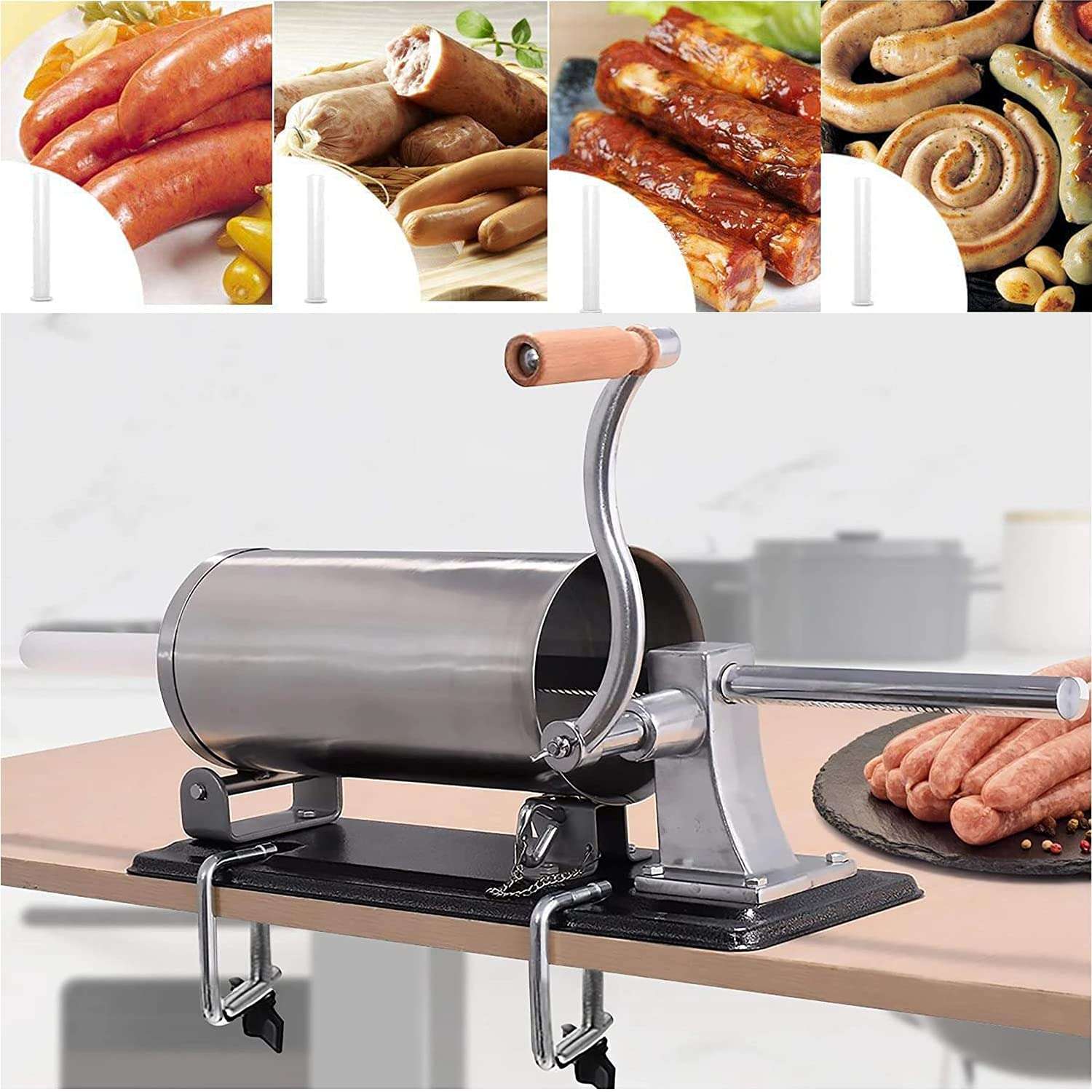 Táto ručná plnička je vhodná na domácu prípravu klobás, jaterníc, salám aj ďalších mäsových výrobkov. Valec z nerezovej ocele s objemom 5 kg je pevne uchytený k základnej doske, čo zaisťuje stabilnú prácu. Konštrukcia je navrhnutá tak, aby pri plnení nevznikali vzduchové bubliny v náplni. Súčasťou sú 4 plastové nástavce rôznych priemerov, vďaka ktorým je možné pripraviť výrobky rôznych veľkostí.