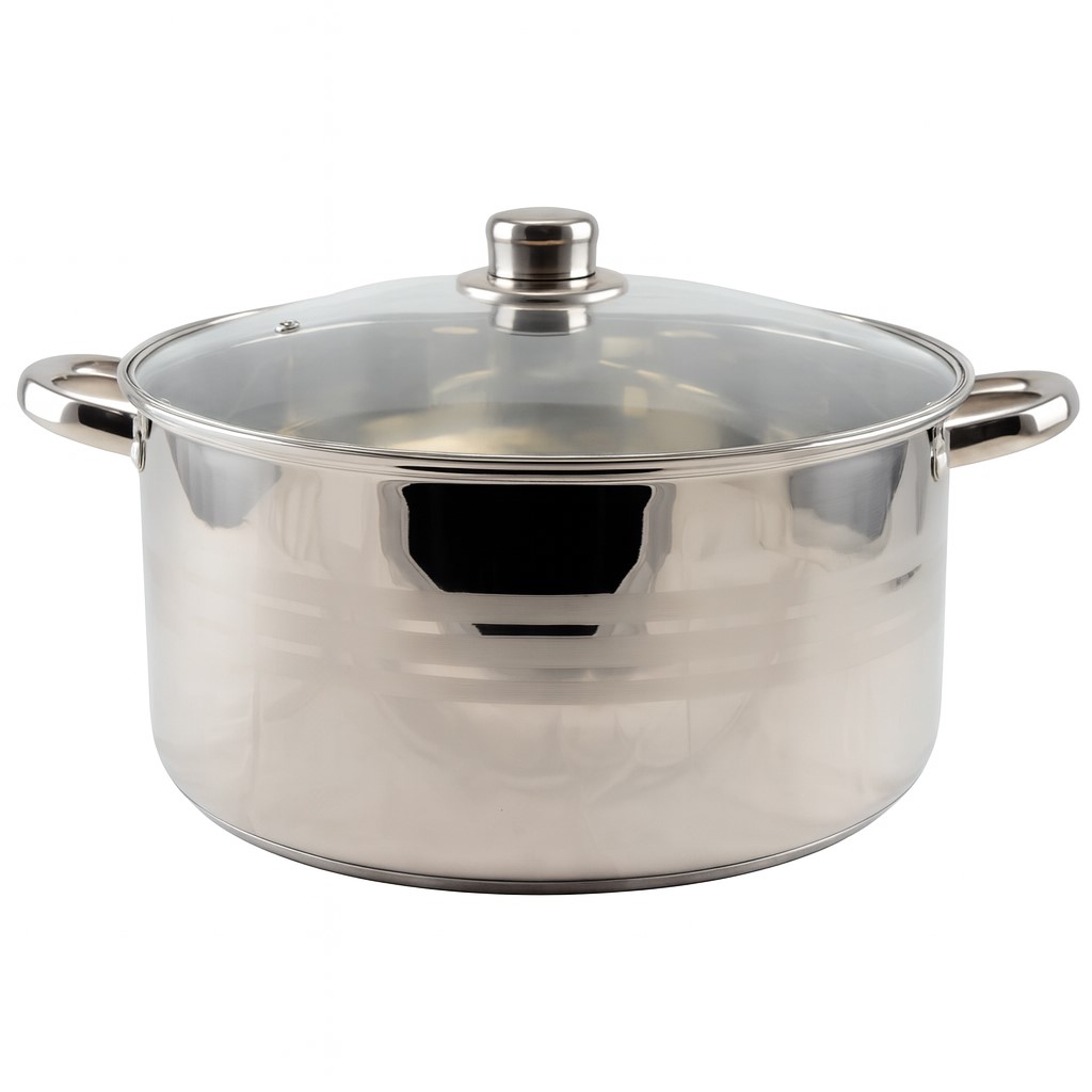Nerezový kastról 32 cm s objemom 10,5l so sklenenou pokrievkou je ideálny na varenie, dusenie a prípravu väčších porcií. Vhodný na všetky typy sporákov vrátane indukcie, s pevnými ušami a jednoduchou údržbou.
