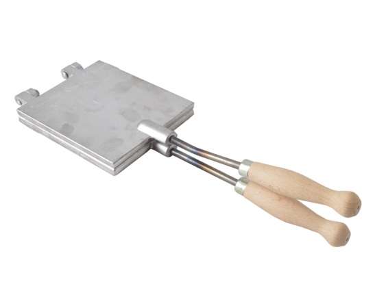 Hliníková forma na pečenie oblátok nad otvoreným ohňom. Veľká plocha na pečenie 16 × 14 cm a dlhá drevená rukoväť pre bezpečné používanie. Ideálna na sladké aj slané oblátky, jednoduchá údržba a vhodná na vonkajšie varenie.