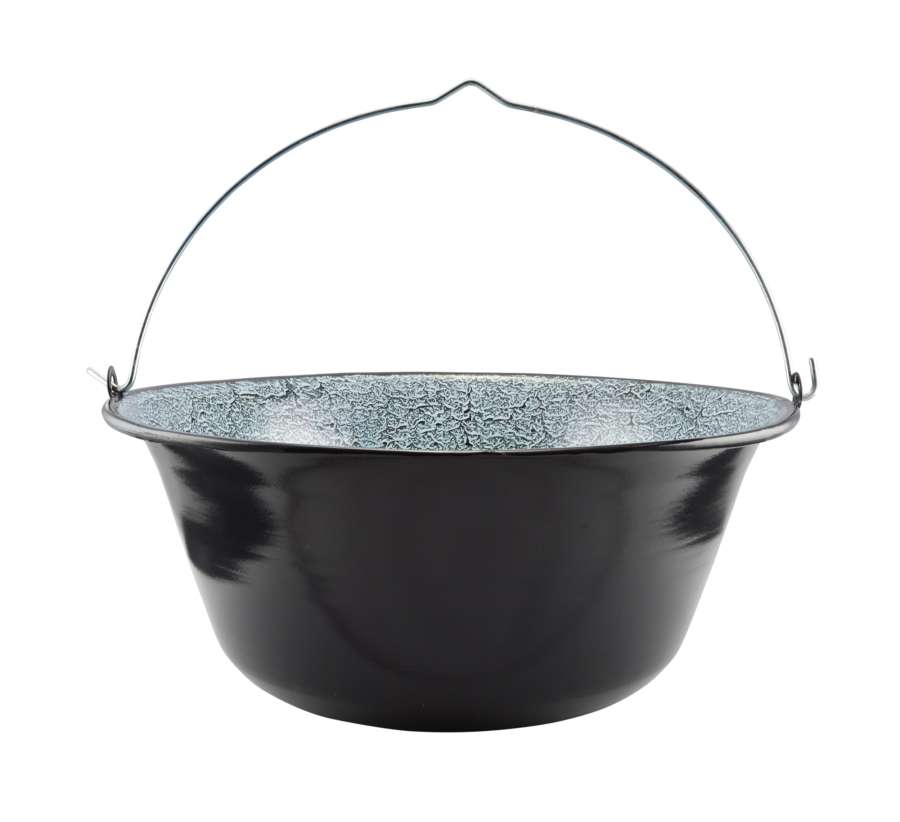 Smaltovaný kotlík 25L Veľký smaltovaný kotlík s objemom 25 litrov, ideálny na varenie na otvorenom ohni alebo plynovom horáku. Vhodný na prípravu guláša, polievok, omáčok a ďalších pokrmov pri rodinných oslavách, kempovaní alebo zabíjačkách. Vyrobený z kvalitného smaltovaného železa, ktoré zaručuje vysokú odolnosť, dlhú životnosť a jednoduchú údržbu.