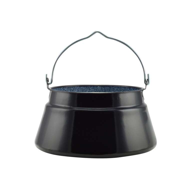 Smaltovaný kotlík s madlom 10L Kvalitný smaltovaný kotlík s objemom 10 litrov určený na varenie na otvorenom ohni alebo plynovom horáku. Ideálne na prípravu rybích a gulášových polievok či iných pokrmov pod holým nebom. Kotlík je vybavený pevným madlom na zavesenie na trojnožku alebo pohodlné prenášanie. Odolná smaltovaná oceľ zaručuje dlhú životnosť a ľahké čistenie.
