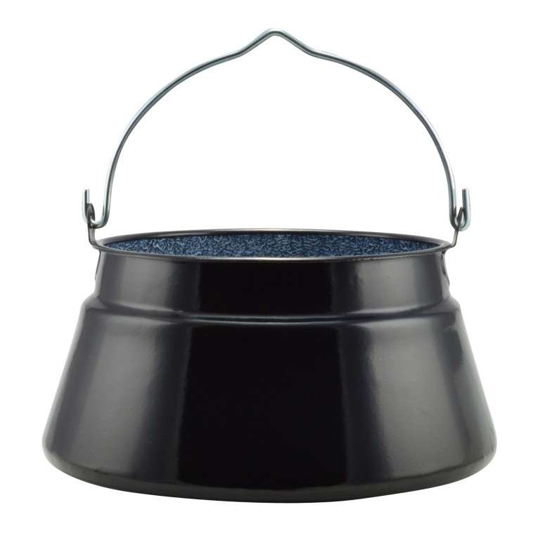 Smaltovaný kotlík na ryby 20L Kvalitný smaltovaný kotlík s horným priemerom 35 cm je ideálny na prípravu rybích polievok – halászlé, gulášov alebo iných tradičných pokrmov na ohni. Vyrobený zo smaltovanej ocele zvnútra aj zvonku, ktorá zaručuje vysokú odolnosť, ľahké čistenie a dlhú životnosť. Perfektná voľba pre záhradné varenie alebo použitie na chate.