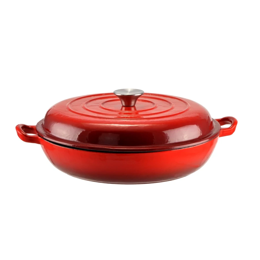 Smaltovaný liatinový nízky hrniec s pokrievkou je vyrobený z čistej liatiny, ktorá dokonale rozvádza teplo po celej svojej ploche a je výnimočne odolná voči vysokým teplotám. V liatinovom hrnci je jedlo prirodzene obohatené o železo, ktoré je dôležité pre mnohé procesy v tele.
