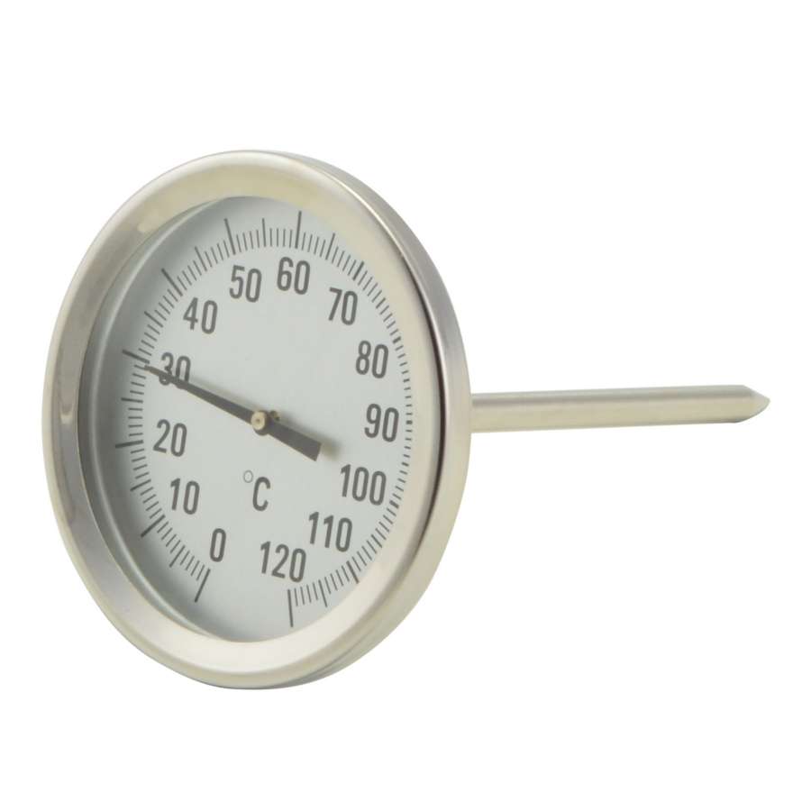 Teplomer 0–120 °C pre montáž na nerezové kotlové zostavy. Umožňuje presné sledovanie teploty pri zahrievaní kvapalín, má odolné antikorové telo a sklenený kryt. Vhodný pre domáce aj technické použitie.